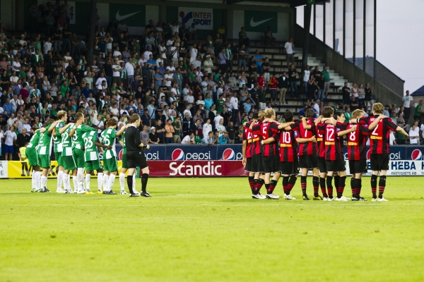 Hammarby vann matchen, men det var BP som tog ledningen genom Pontus Segerström (två mål under kvällen) på en hörna. Hammarbyskruvade dock upp tempot och fick en straff tilldelad i den 23:e minuten, som Sebastian Castro-Tello mycket kyligt slog in. Mikkek Jensen (bilden nedan) fick bollen på handen.